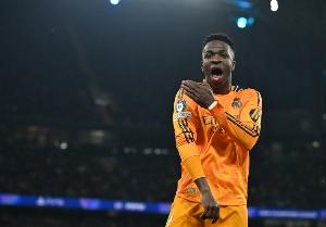 体育资讯4月17日讯 欧冠1/4决赛次回合比赛,维尼修斯破门,皇马主场1-1阿森纳,两回合总比分1-4落后。